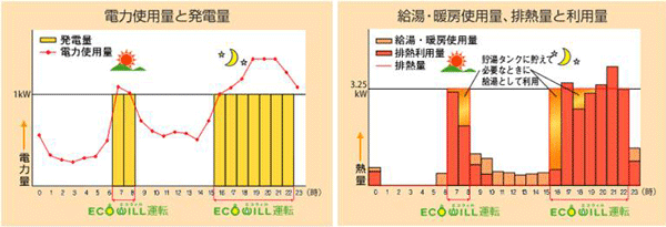エコウィルは、電気やお湯・暖房を多く使う時間帯に運転するので効率的です。